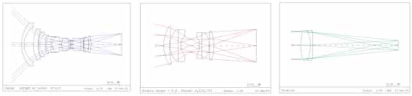 Optical designs are available to cover wide angles of 90° to 120° or more, but traditionally consist of numerous optical elements. An example of this is a conventional inverted telephoto lens, which needs this complexity to minimize image imperfections, or aberrations, across the field of view. The length, as a multiple of the input beam diameter, is typically 15 or more for an F/3-class lens, as in the example in Figure 1A. Disadvantages of a design with a large number of elements include greater sensitivity to manufacturing and alignment errors, cost, and length.