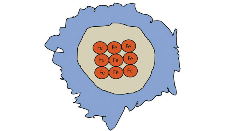 Ferritin is an iron storage protein that naturally exists in most biological systems. The ferritin molecule consists of a segmented protein shell with an outer diameter of 12.5 nm and an inner diameter of 7.5 nm, containing up to ~4500 Fe3+ atoms as Fe(OH)3 within its hollow interior. Biomineralization allows ferritins to reconstitute themselves with various metallic cores such as cobalt and manganese.