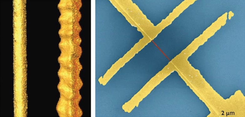 After discovering that lead sulphide nanowires can be synthesized with different facets, which makes them look like straight or zigzag wires, the team determined that there must be interesting consequences for electronic properties. The team then made a second discovery: at low temperatures, the skin of the nano-structures even behaves like a superconductor. This means that the electrons are transported through the structures with significantly lower resistance.