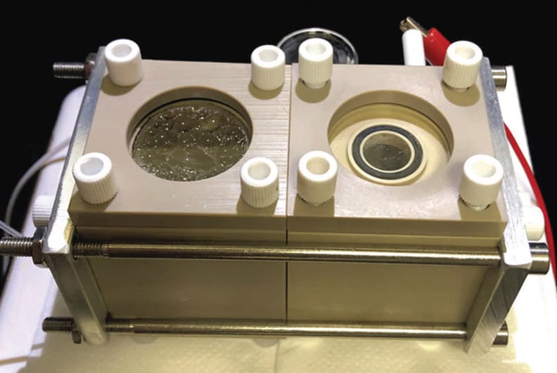 The researchers initially tried to increase the efficiency by packing more bacteria onto the nanowires, which transfer electrons directly to the bacteria for the chemical reaction. But the bacteria separated from the nanowires, breaking the circuit. The team eventually discovered that the bugs, as they produced acetate, decreased the acidity of the surrounding water — that is, increased a measurement called pH — and made them detach from the nanowires. The team found a way to keep the water slightly more acidic to counteract the effect of rising pH as a result of continuous acetate production. This allowed them to pack many more bacteria into the nanowire forest, increasing efficiency by a factor of nearly 10. They were able to operate the reactor, a forest of parallel nanowires, for a week without the bacteria peeling off.
