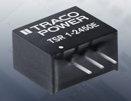 TSR 1E non-isolated/point-of-load DC/DC converters from TRACO Power, San Jose, CA, feature efficiency up to 92% and full load operation up to 60 °C. They are suited for 12V and 24V bus applications and are specifically designed for 5VDC and 3.3VDC output requirements. They feature 1 Amp output current and regulation, and protection against short circuit, overvoltage, and overload.