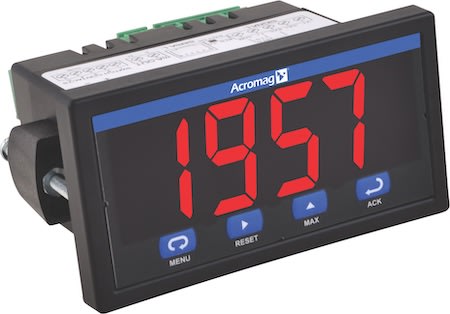 The Vertu™ VPM3000 Series of universal input displays with transmitter and alarm capabilities is available from Acromag, Wixom, MI. The instruments combine the digital indicator function of a panel meter with optional signal conditioning for 4-20 mA transmitter output and/or alarm trip solid-state relays. Field-selectable inputs accept process current/voltage and temperature sensor signals including 4-20mA, ±20mA, 0-10V, ±10V, Pt RTDs, and most common thermocouple varieties. Modbus RTU serial communication is also supported.