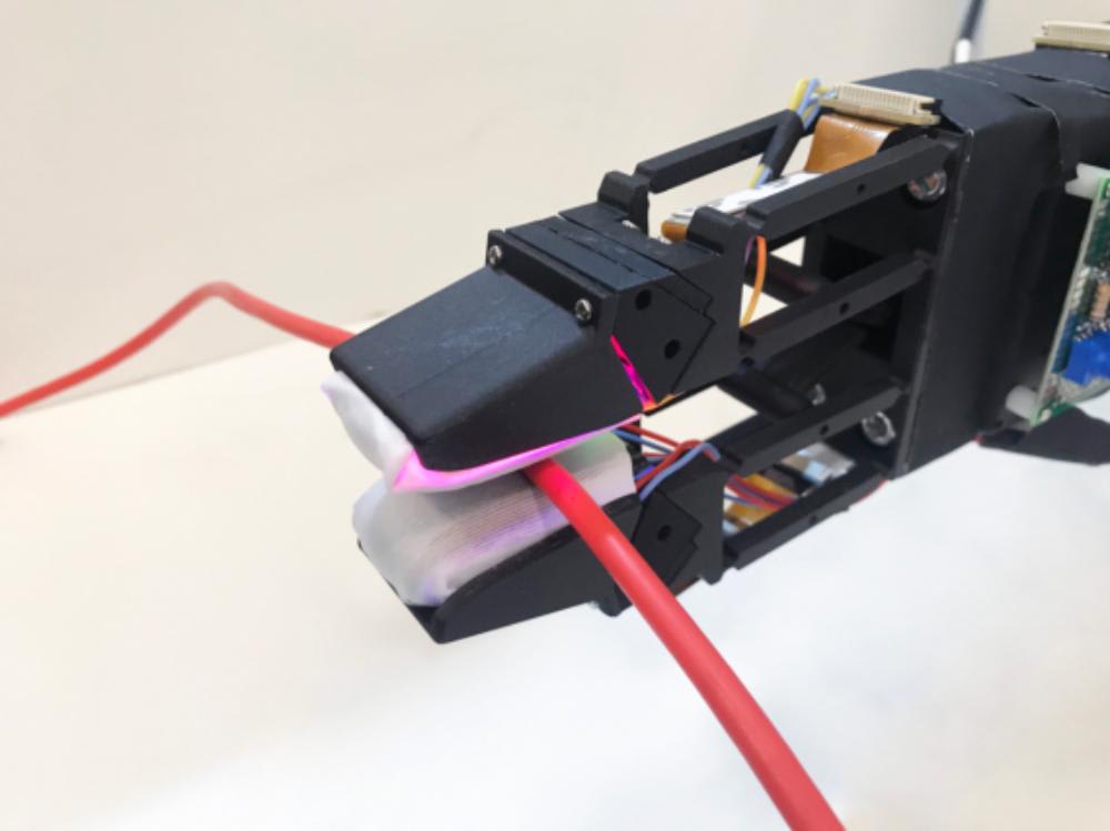 A vision-based “GelSight” sensor offers real-time tactile feedback, estimating the position and orientation of the cable in the grip, as well as friction forces as the cable slides.