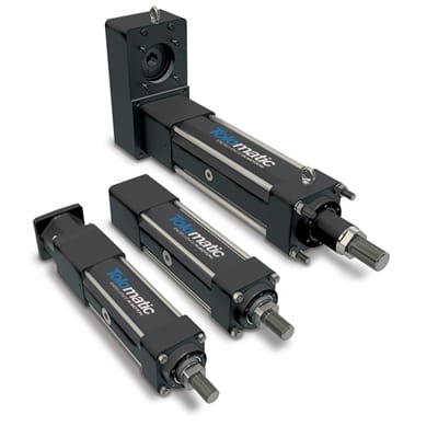 Tolomatic (Medina, MN) offers the RSX128 electric actuators rated up to 50,000 pounds of force (222.4 kN). They feature precision-ground planetary roller screws for use in challenging environments. Additional frame sizes include the RSX080 that provides 18,000 lbf/80kN and the RSX096P press model that is optimized to provide extend force up to 40,000 lbf/178 kN. For all models, IP65 is standard for protection against dust and water spray; IP67 is optional for improved resistance of water ingress. The actuators’ construction includes heavy-duty tie-rods and Type III hard-coat anodized aluminum housings. A standard internal anti-rotate feature prevents the rod from rotating without external guidance. Additional features include an access port for re-lubrication to maximize service life and a breather/purge port to further prevent ingress into the actuator.