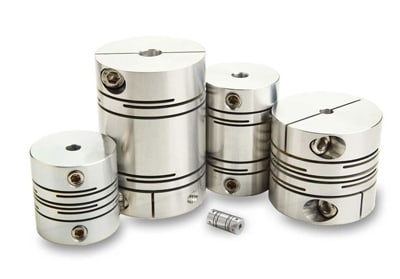 Ruland Manufacturing (Marlborough, MA) offers slit couplings from Reliance Precision. The zero-backlash couplings are made from a single piece of aluminum with intermittent slit cuts, allowing for high torque and torsional stiffness capabilities and low inertia. A proprietary slit pattern has radiused edges, reducing stresses that build up during misalignment conditions and torque loads. The design allows for speeds up to 70,000 rpm. The couplings are available in clamp screw and set screw designs with inch, metric, and inch-to-metric bore sizes ranging from 1/8 to 3/8" and 1.5 to 12 mm.