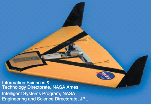 A full inertial unit and significant processing would otherwise be required to achieve the same effect.As a prelude to full autonomy, substantial stability augmentation is provided to the pilot at very low cost in terms of space, power, and mass. The sensor is about 40 times lighter than a comparable inertial attitude reference system.Other significant features of the biomorphic flyer shown in the figure include its ability to fly at high angles of attack ~30° and a deep wing chord which allows scaling to small size and low Reynold 's number situations.Furthermore, the placement of the propulsion system near the center of gravity allows continued control authority at low speeds. These attributes make such biomorphic flyers uniquely suited to planetary and terrestrial exploration where small size and autonomous airborne operation are required.