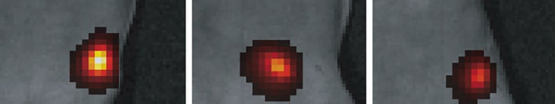 The UCNPs used in the latest study measure about 12-15 nanometers (billionths of a meter) across — small enough to allow them to penetrate into tissue.
