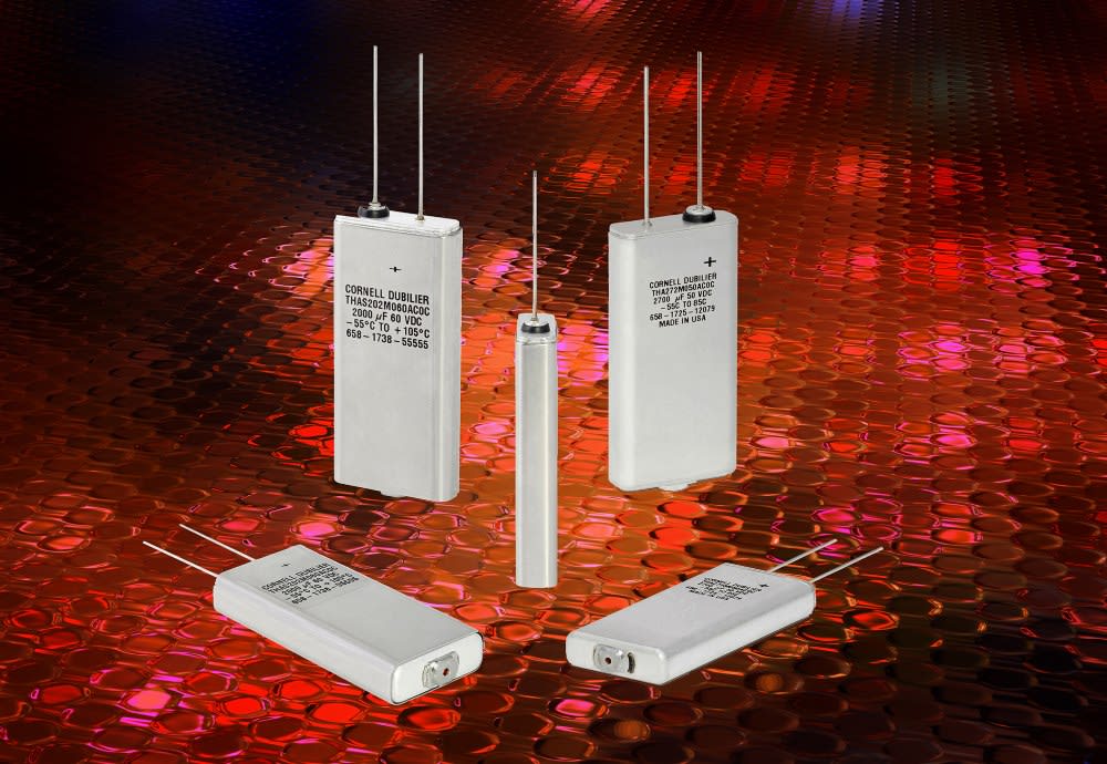Cornell Dubilier Electronics, Liberty, SC, released 85 °C THA Series Thinpack capacitors that are 8.2 mm thick, and 9 mm for the 105 °C THAS Series.