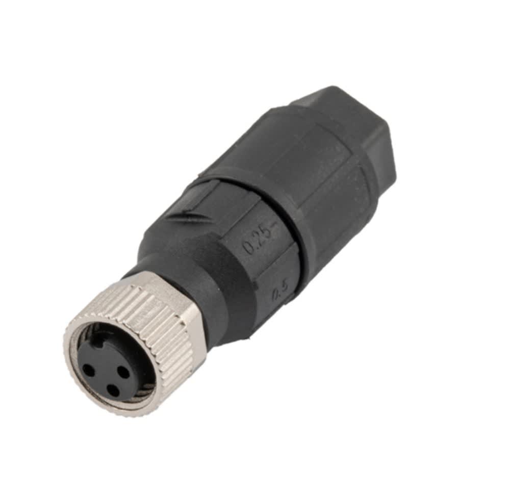 The IP68-rated male and female cable connectors are available with 3, 4, 5, 8, or 12 gold-plated contacts in a molded UV-resistant nylon (PA) housing. The plastic connectors are for use in factory control systems and electrical equipment requiring IP68 protection.