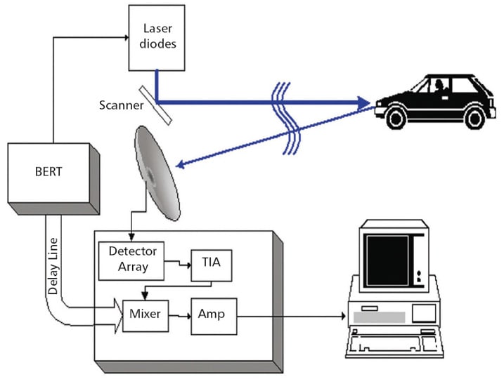 In such a spread spectrum time-resolved system, a low-power continuous wave (CW) laser diode modulated with a pseudo-random bit sequence replaces the pulsed laser as the light source. The fundamental idea is that range resolution in CW operation is preserved if the emitted signal is modulated such that its cross-correlation with a demodulating signal is a cyclically repeated delta-like function of time. This allows retrieval of laser returns from specific distances despite temporal overlap at the detector.
