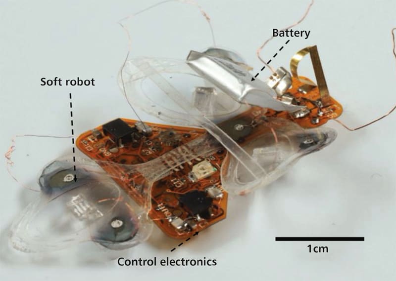 Researchers have developed a soft robotic insect propelled at 3 cm per second by artificial muscles.