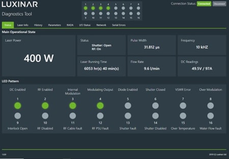 Luxinar (Kingston Upon Hull, UK) has integrated a new diagnostics web server into the OEM 45iX laser that displays real-time internal environment information from the laser in an easily accessible manner. The laser can be connected directly to the PC via Ethernet or connected to the local network. If connected to the local network, any device that runs a modern web browser can access the diagnostics tool.