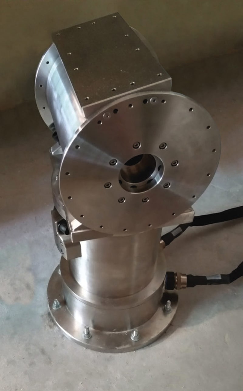 Blue Joule Corporation answered the call from Johns Hopkins University - Applied Physics Laboratory (JHU-APL) for a compact gimbal for use as laboratory equipment to allow for extremely precise testing and documenting of their own equipment. The company developed and recently delivered the Mini Mount (MM) Gimbal. Made of stainless steel and comprised of a package of pre-integrated motion control components from various HEIDENHAIN brands, the gimbal is approximately 20" tall and is tested to be accurate at better/smaller than 1/1000th of a degree.