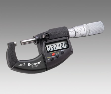 L.S. Starrett, Athol, MA, offers the 733.1 electronic digital micrometers that include an IP67 level of protection on sizes 0 - 4" (0 – 100 mm) and on various application-specific models. They feature large LCD displays and are equipped with RS-232 output. The micrometers are available in sizes from 0-1" (25 mm) to 24" (600 mm) with resolution of .00005" (0.001 mm).