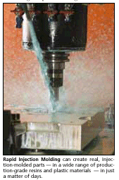 Before rapid injection molding,design engineers faced a large gap between the capabilities of rapid prototyping and conventional injection molding. Rapid prototyping parts were fast and relatively cheap, but weren 't "real" Injection molded prototypes were real parts, but neither cheap nor fast. With rapid injection molding it is now possible to get real parts, real fast, and at a real savings.