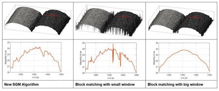 Chromasens (Konstanz, Germany) introduced an advanced 3D reconstruction method to its CS-3D-API (Application Programming Interface) library that allows integrators to build, deploy, and scale higher-value 3D imaging systems capable of improved detection of extremely small defects. Based on the semi-global matching algorithm (SGM), it combines global and local stereo methods for more accurate, pixel-wise matching at low runtime. The new SGM algorithm represents an alternative to the traditional Block Matching (BM) method used previously with Chromasens 3D stereo cameras to match corresponding pixels between two images. The primary difference between the two methods is how a matching cost (energy) is computed. For BM, the cost is computed with normalized cross-correlation, while SGM utilizes a specialized Census transformation.