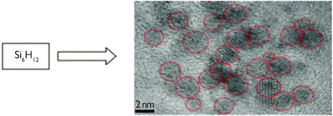 To find a more balanced middle ground, liquid-silicon nanomaterial replacements are emerging for SiH 4, with CHS leading the charge. CHS requires only mild conditions for the formation of tailored silicon materials and offers a competitive advantage with lower temperature deposition and faster deposition rates compared to SiH4. This is due to its low activation energy (0.3 eV), which is 5-8 times lower than SiH4. This approach is simpler, more robust and far more efficient from both a production and capital standpoint for Si thin-films and nanomaterials development (Figure 4). Cyclohexasilane thus provides an easy avenue to manufacture highly tailored and efficient LEDs based on silicon QDs.