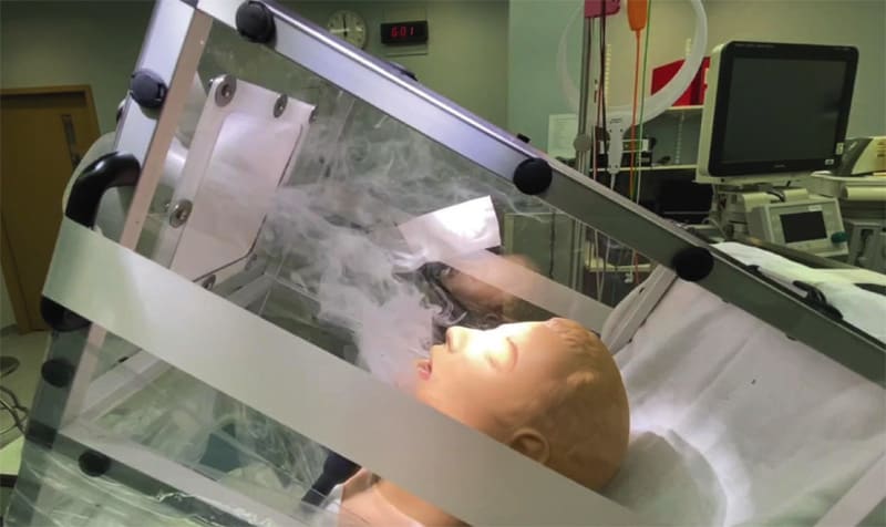 At the onset of the COVID-19 pandemic, initial approaches to minimize viral spread involved the use of plexiglass barriers, such as intubation boxes, to limit healthcare worker exposure when inserting a breathing tube in a patient’s throat. While these barriers may mitigate exposure to larger droplets, the research team hypothesized that they do little to stop the spread of smaller aerosolized viral particles.