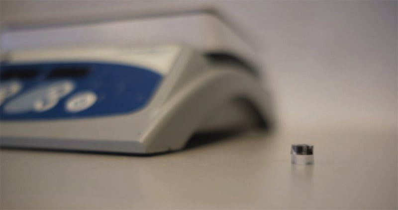 The outside of the heater tablet is composed of a non-reactive acrylic mold that encapsulates lithium, a reactive element that is commonly found in battery cells. When dissolved in water, the reactive lithium interacts with the solution to release heat and hydrogen gas. This results in an increase of temperature for an extended period of time.