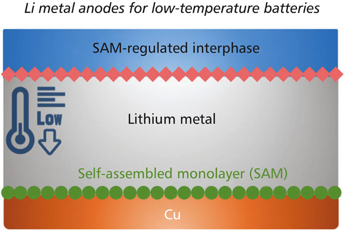 Lithium metal batteries are the next generation of battery after the lithium-ion battery. They use a lithium anode and have higher energy density but have problems with dendritic growth, low efficiency, and low cycle life. To solve these problems, researchers developed a self-assembling monolayer that is electrochemically active so that it can decompose into its proper components and protect the surface of the lithium anode.