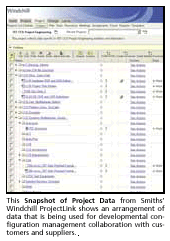 - New design data visualization capability to extend the enterprise into the customer chain. The customer "connects" to the Windchill home page using security/access controls to view design data as created to incorporate concerns in the development process. The mark-up capability allows customers to convey change requests via electronic mark-up as input to Smiths 'change process without regeneration.