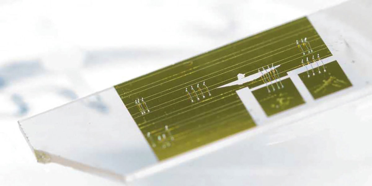 Researchers employed a material that is also used as a modulator in the telecommunications industry. This material has many positive properties but as a waveguide, it confines the light to the inside. This is less than ideal, as a measurement is possible only if some of the guided light can get out. For this reason, the researchers attached delicate metal structures to the waveguides that scatter the light to the outside of the device.