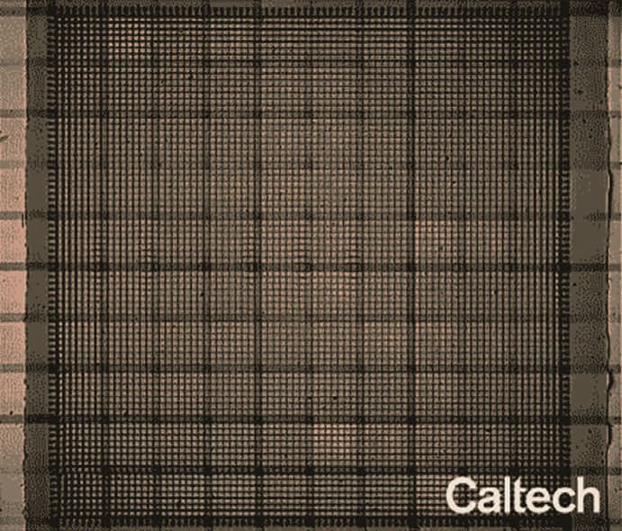 The researchers designed a silicon-coated lattice with microscale straight beams that bend into curves under electrochemical stimulation, taking on unique mechanical and vibrational properties. The materials were created using an ultra-high-resolution 3D printing process called two-photon lithography. Using this novel fabrication method, they were able to build in defects in the architected material system, based on a pre-arranged design. In a test of the system, a sheet of the material was fabricated that, under electrical control, revealed a Caltech icon.