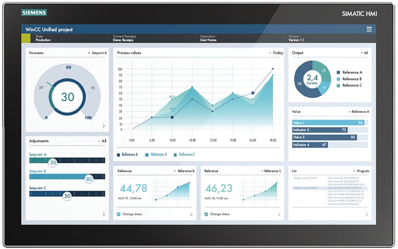Unified HMI software also enables users to establish and monitor production key performance indicators and to include this data in business process reporting.