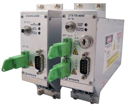 EMCORE Corporation (Alhambra, CA) began shipping its Optiva Q/V-Band fiber optic links for applications from 2 MHz to 60 GHz. Optiva Q/V-Band unamplified microwave fiber optic transmitter and receiver pairs eliminate the performance and cost penalty of block up/down conversion. At the heart of the system is EMCORE’s high-performance, ultra-low RIN (Relative Intensity Noise) source laser technology combined with high optical input power capable photodiodes. Optiva Q/V-Band links feature microprocessor-based transmitter control for laser and modulator bias, along with link gain for consistent high-performance, low-bias operation and higher SFDR (Spurious-Free Dynamic Range) of >102 dB-Hz2/3 at 60 GHz.