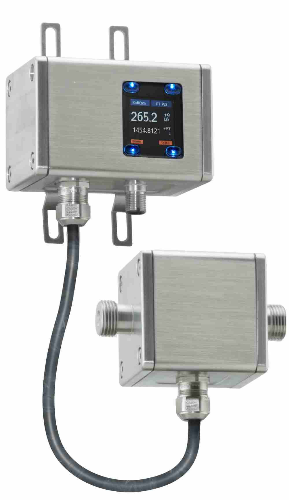 With extensive options for on-site programming, they are suitable for a wide variety of applications, particularly for batching. Configurable optical buttons can be used to display parameters such as flow rates or temperatures. A changing color system in the display warns of limit violations. Since it is produced in a remote version, the flow meter can be used for media temperatures from -40°F up to +284°F.