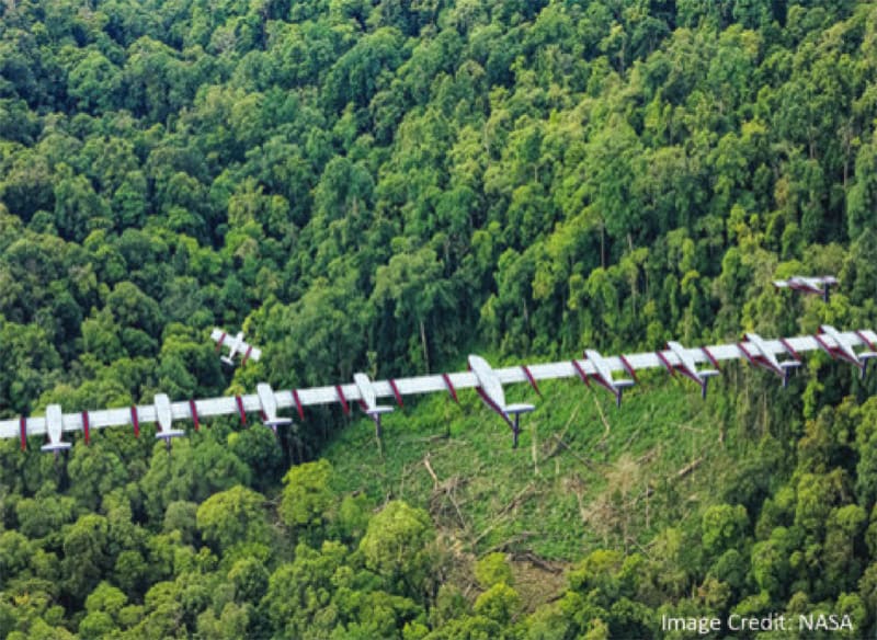 NASA Langley Research Center developed a vertical takeoff and landing (VTOL) unmanned aerial vehicle (UAV) design that is a multi-vehicle concept with a large “parent” UAV that permits smaller “child” UAVs to dock wingtip-to-wingtip while in flight.