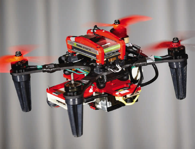 The team developed algorithms that combine information from the two sensors and use it to track the quadrotor's position relative to its surroundings. This enables the onboard computer to control the drone as it flies and spins with only three rotors. The team found that both types of cameras perform well in normal light conditions. When illumination decreases, however, standard cameras begin to experience motion blur that ultimately disorients the drone and crashes it, whereas event cameras also work well in very low light.