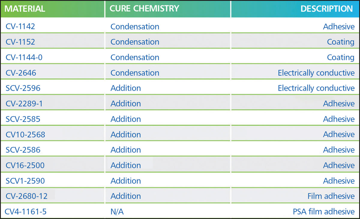 Another functional consideration includes what materials the silicone will be in contact with — will they be metals, polymers, or composites? What are the temperature limitations that those materials have? If the silicone that’s been selected requires heat to cure, that could negatively impact adjacent materials; a better choice might be to select a room temperature vulcanizing (RTV) silicone instead. There are space-grade silicones available with either addition or condensation cure chemistry.
