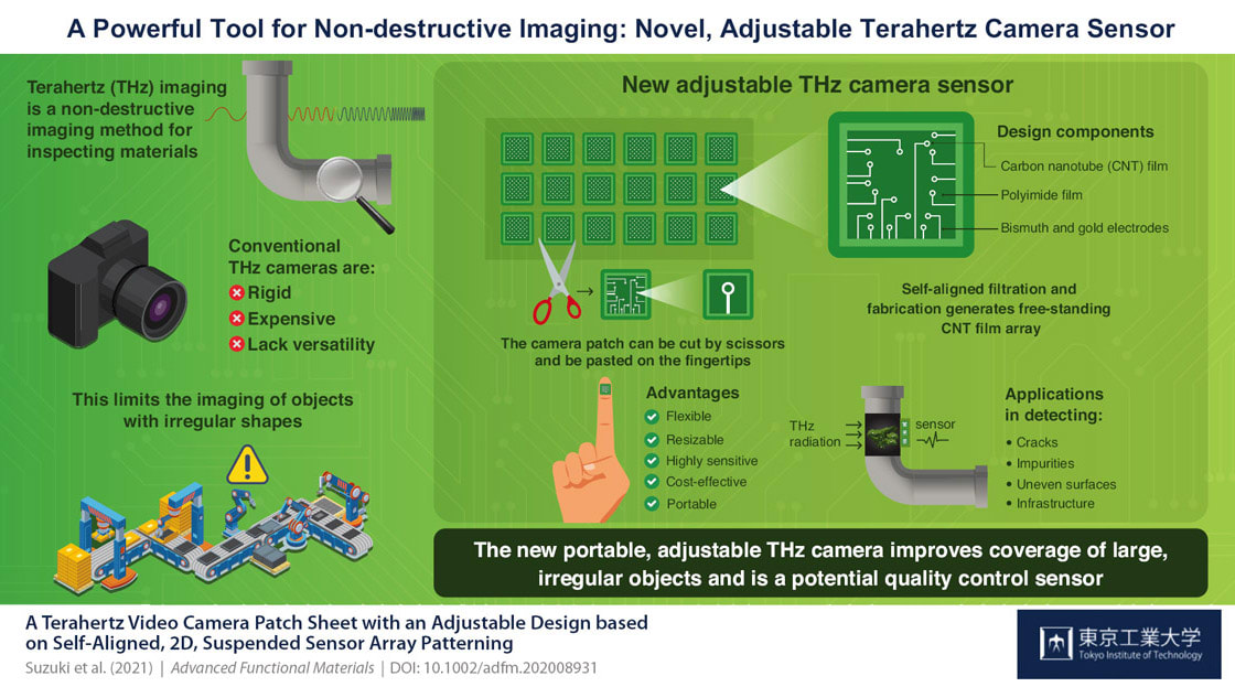 “Given the diversity in shapes, structures, and sizes of test objects, the camera design and sensor must be adapted to conform to different configurations. In our study, we have developed a simple and cost-effective fabrication method for generating THz cameras with adaptable shapes,” said Dr. Kawano.