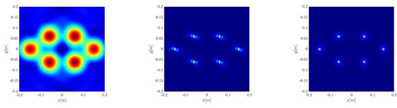To compare the performance of the three imaging schemes, the authors gave simulated data of a rotating object in LEO to each one and compared the images that they produced. The rank-1 image was much more accurate and well-resolved than the result of single-point migration. It also had similar qualities to the output of the Kirchhoff migration technique. But this result was not entirely surprising, given the problem’s configuration. “It is important to note that the rank-1 image benefits from the rotation of the object,” Papanicolaou said. Although a rotating object generates more complex data, one can actually incorporate this additional information into the image processing technique to improve its resolution. Rotation at certain angles can also increase the size of the synthetic aperture, which significantly improves the resolution for the Kirchhoff migration and rank-1 images.