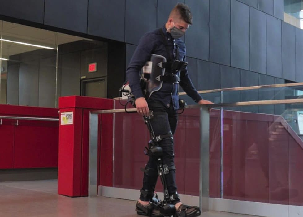 Exoskeleton legs operated by motors already exist but they must be manually controlled by users via smartphone applications or joysticks. Each time the user wants to perform a new locomotor activity, they have to stop, take out their smartphone, and select the desired mode. To address that limitation, the researchers fitted exoskeleton users with wearable cameras and are now optimizing AI computer software to process the video feed to accurately recognize stairs, doors, and other features of the surrounding environment.