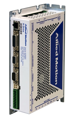 Allied Motion Technologies (Amherst, NY) released the H Series brushless servo motor drive with Hiperface DSL, multi-feedback device support, and Safe Torque Off (STO) safety options. The drive features a digital, DSP-based design for motor control and commissioning. Features include power supply of 110 to 240 VAC, rated output power up to 4800 W, rated output current of 12 continuous Arms and 21 peak Arms, and encoder, resolver, and Hall feedback options. Programable digital I/O includes four high-speed discrete I/O EtherCAT, Ethernet, CAN/CANopen, and ±10V analog communication options.