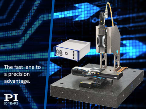 PI, L.P. (Auburn, MA) offers X-417 pre-configured motion and automation systems including EtherCat motion controllers and software. The multi-axis motion subsystem features nanometer resolution and absolute encoders for industrial precision motion applications including automation, test and inspection, medical manufacturing, and semiconductor testing. The XY base system is made of two 3-phase, motor-powered, V-417 linear stages with travel ranges from 204 to 407 mm. The XYZ system includes an L-412 high-load linear stage mounted vertically, providing 4" (102 mm) travel range. The Z-stage is equipped with a synchronous servo motor and a holding brake.