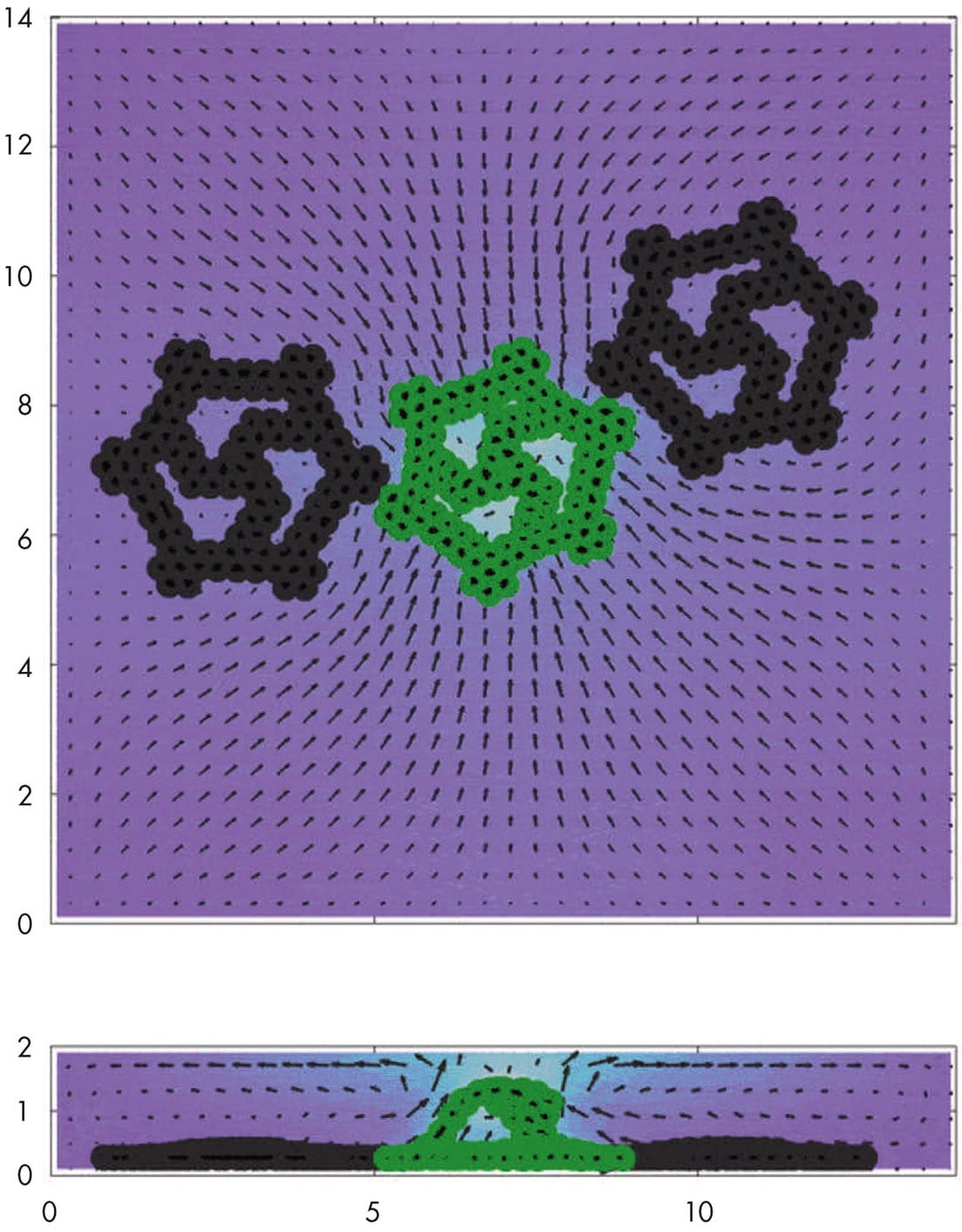 The team found that not all the gear parts needed to be chemically active for motion to occur; in fact, asymmetry is crucial to create movement. By determining the design rules for the placement, the researchers could direct the rotation to be clockwise or counterclockwise. This added “program” enabled the control of independent rotors to move sequentially or in a cascade effect, with active and passive gear systems. This more complex action is controlled by the internal structure of the spokes and the placement within the fluid domain.