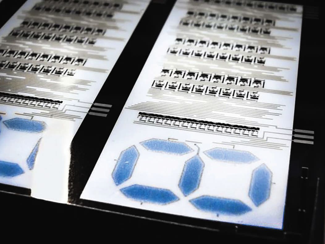 These large-scale integrated circuits (LSI) can be used, for example, to power an electrochromic display — itself manufactured as printed electronics — or another part of the online electronic world that the Internet of Things brings.