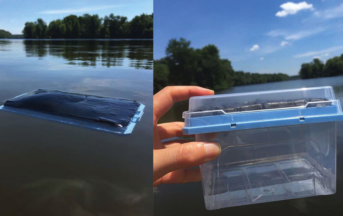 The filter uses sunlight to drive water purification and resembles a large sponge that soaks up water but leaves contaminants — like lead, oil, and pathogens — behind. To collect the purified water from the sponge, one simply places it in sunlight. At the heart of the device is a gel that changes depending on temperature: at room temperature, it acts as a sponge, soaking up water but when heated to 91 °F, the gel pushes the water out of its pores. The gel sits inside two other layers that stop contaminants from reaching the inner gel. The middle layer is a dark-colored material called polydopamine that transforms sunlight into heat and also keeps out heavy metals and organic molecules. The final external layer is a filtering layer of alginate, which blocks pathogens and other materials from entering the gel. The gel can purify water contaminated with petroleum and other oils, heavy metals such as lead, small molecules, and pathogens such as yeast. The gel maintains its ability to filter water for at least ten cycles of soaking and discharge with no detectable reduction in performance.