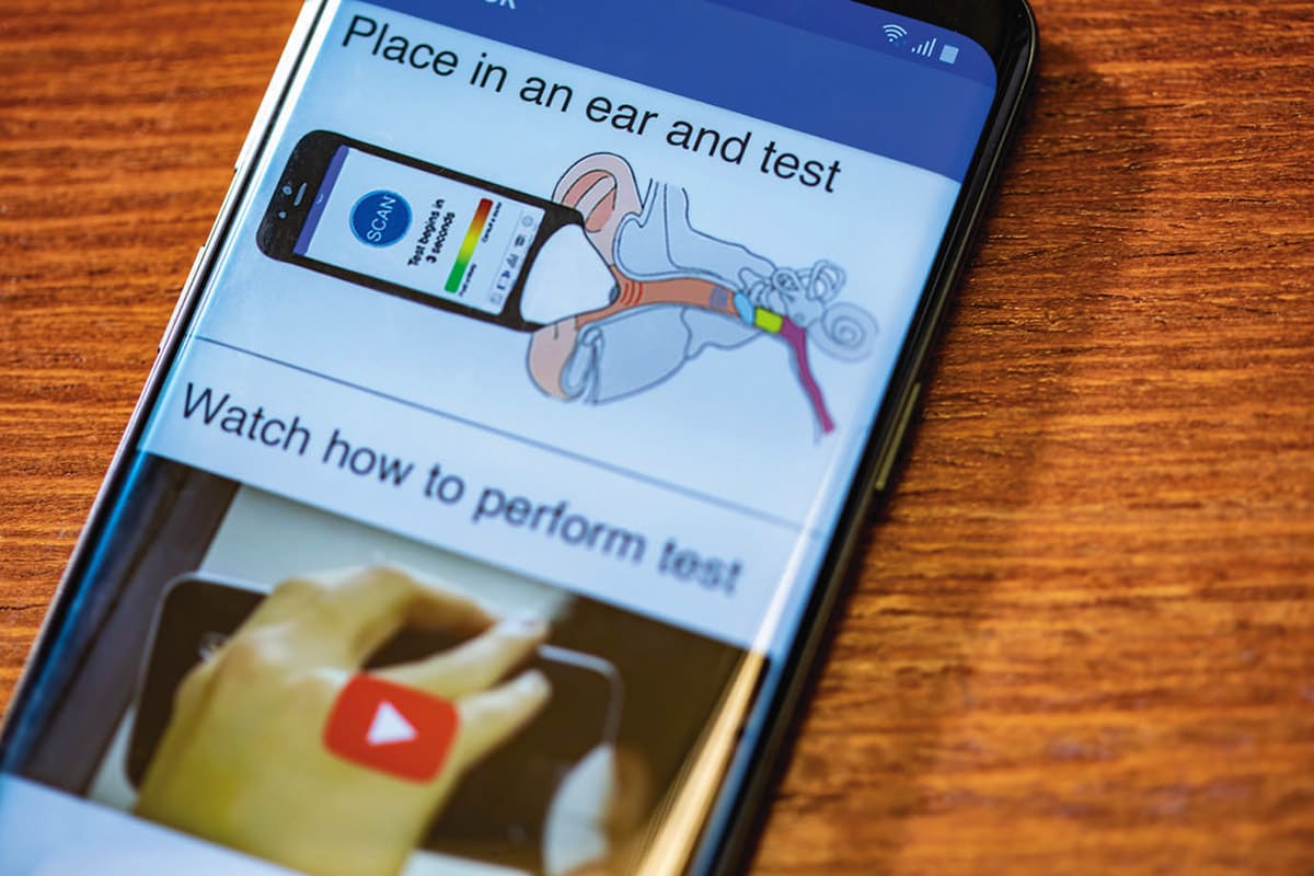 The smartphone makes a series of soft audible chirps into the ear through a small paper funnel and depending on the way the chirps are reflected back to the phone, the app determines the likelihood of fluid present with a probability of detection of 85%. This is on par with current methods used by specialists to detect fluid in the middle ear that involve specialized tools that use acoustics or a puff of air.