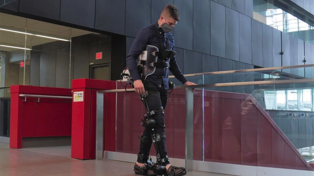 Exoskeleton legs operated by motors already exist but they must be manually controlled by users via smartphone applications or joysticks. Each time the user wants to perform a new locomotor activity, they have to stop, take out their smartphone, and select the desired mode. To address that limitation, the researchers fitted exoskeleton users with wearable cameras and are now optimizing AI computer software to process the video feed to accurately recognize stairs, doors, and other features of the surrounding environment.