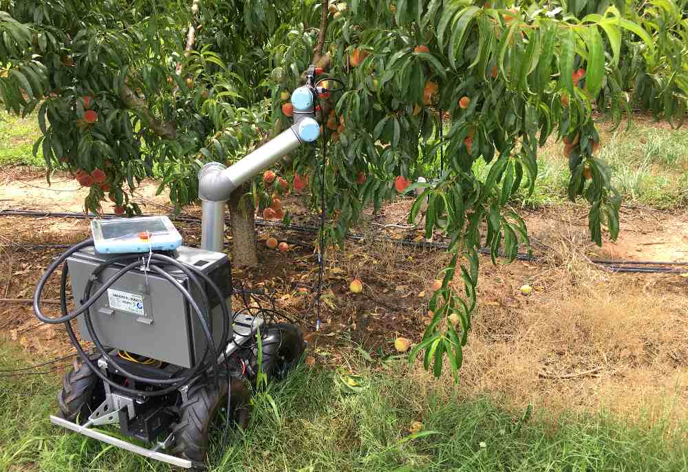 Ai-Ping Hu: Our mobile robot arm system is a research platform. It has been developed in consultation with horticultural researchers at the University of Georgia Griffin campus. The intent is that the eventual robot platform will operate autonomously. The selection of the off-the-shelf Universal Robotics UR5 collaborative robot enables it to operate safely around people.
