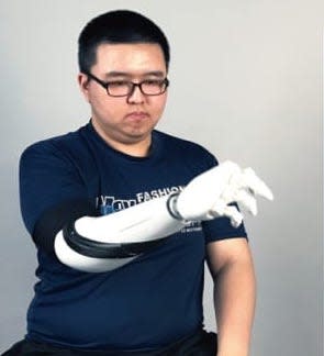 A prosthetic arm called AI Armature uses artificial intelligence and computer vision via smart glasses. A gesture control system reduces the effort needed by upper limb amputees to actuate their prosthetic hand.