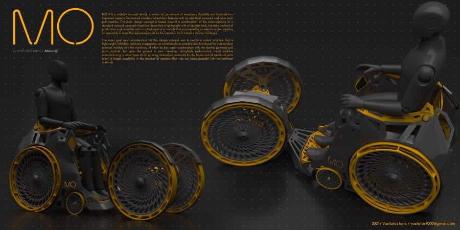 The Mo wheelchair is a lightweight solution that increases a person’s ability to take their chair over wet, muddy, or rough surfaces without causing undue stress on the physical environment or the person using the chair. It can be disassembled or folded quickly to a size small enough to transport.
