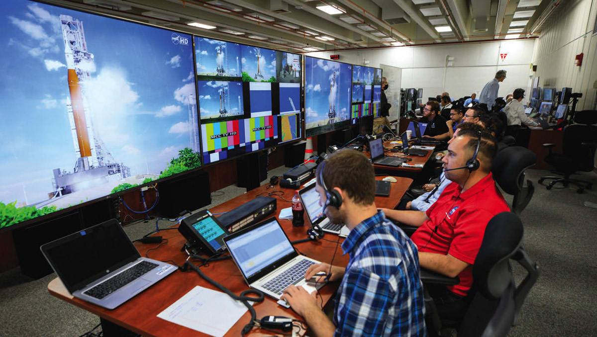 Teams at Kennedy Space Center participate in the first joint integrated launch countdown simulation for Artemis I. The training exercise rehearses all aspects of the launch countdown, from cryogenic loading of the SLS rocket core stage to liftoff. (NASA/Ben Smegelsky)