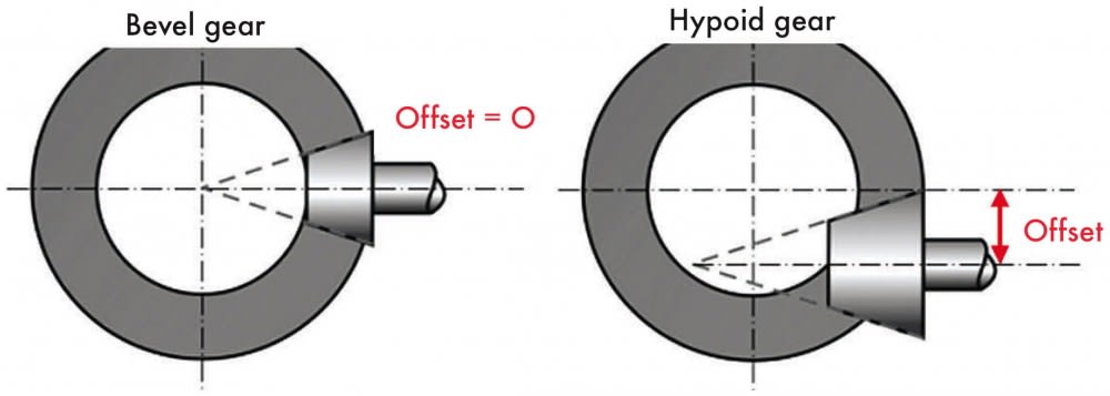 In contrast to standard bevel gears, the mating gear shafts for hypoid gear sets do not intersect because the smaller gear shaft (referred to as the pinion) is offset from the larger gear shaft (referred to as the crown). It is these non-intersecting axes that Mr. Wildhaber designed with the rear axle in mind, leading to the vehicle performance improvements described above.