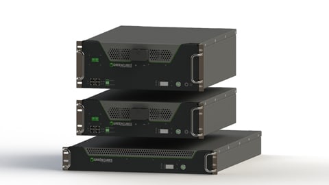 Green Cubes Technology (Kokomo, IN) announced Guardian lithium-ion battery backup units for rackmount installations such as telecom and data centers. The family consists of three sizes ranging from 2-RU to 4-RU heights that fit in 19” or 23” cabinets and support capacity ranges from 105 Ahr to 175 Ahr. The batteries provide a nominal 48 V output and charge and discharge up to 100 Amps. Each battery also contains an integrated Battery Management System (BMS), charging electronics, and proprietary Energy Balancing Technology (EBT) that enables active current control, load sharing, and State of Charge balancing across connected units. They feature either lithium nickel manganese cobalt or lithium iron phosphate chemistries.