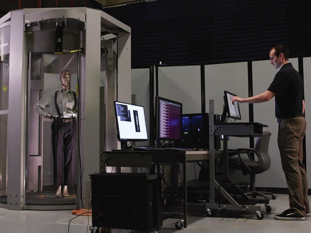 The new system design includes improved antennas and significantly reduces imaging irregularities. With this advancement, airline passengers or people attending large public events may be scanned while wearing light sweaters or jackets, instead of having to take them off before walking through the scanner portal.
